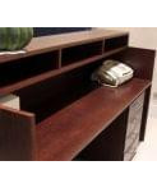 Парикмахерская стойка администратора (ресепшн) FLEURE SOFT для салона красоты. Удобная стойка для администратора салона. Массивный ресепшн, выполненный из шпонированной ДСП с состаренным зеркалом на передей панели.