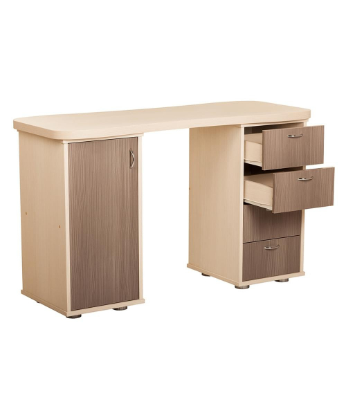 Двухтумбовый маникюрный стол 217 отличается своей универсальностью. Столешница стола изготовлена из ламинированной ДСП.