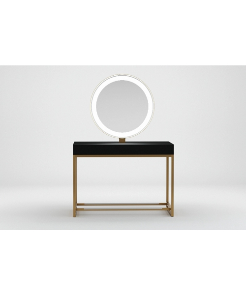 Зеркальное полотно в форме идеального круга с декоративной подсветкой, надёжная порошковая покраска, устойчивая к образованию ржавчины, вместительная столешница для инструментов, мощные металлические подножки с накладками из нержавеющей стали и максимально устойчивые опоры. Уникальное сочетание утонченного дизайна и безукоризненного качества исполнения.