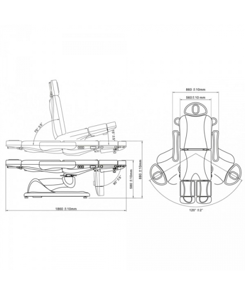 • Угол подъема спинной части 80°